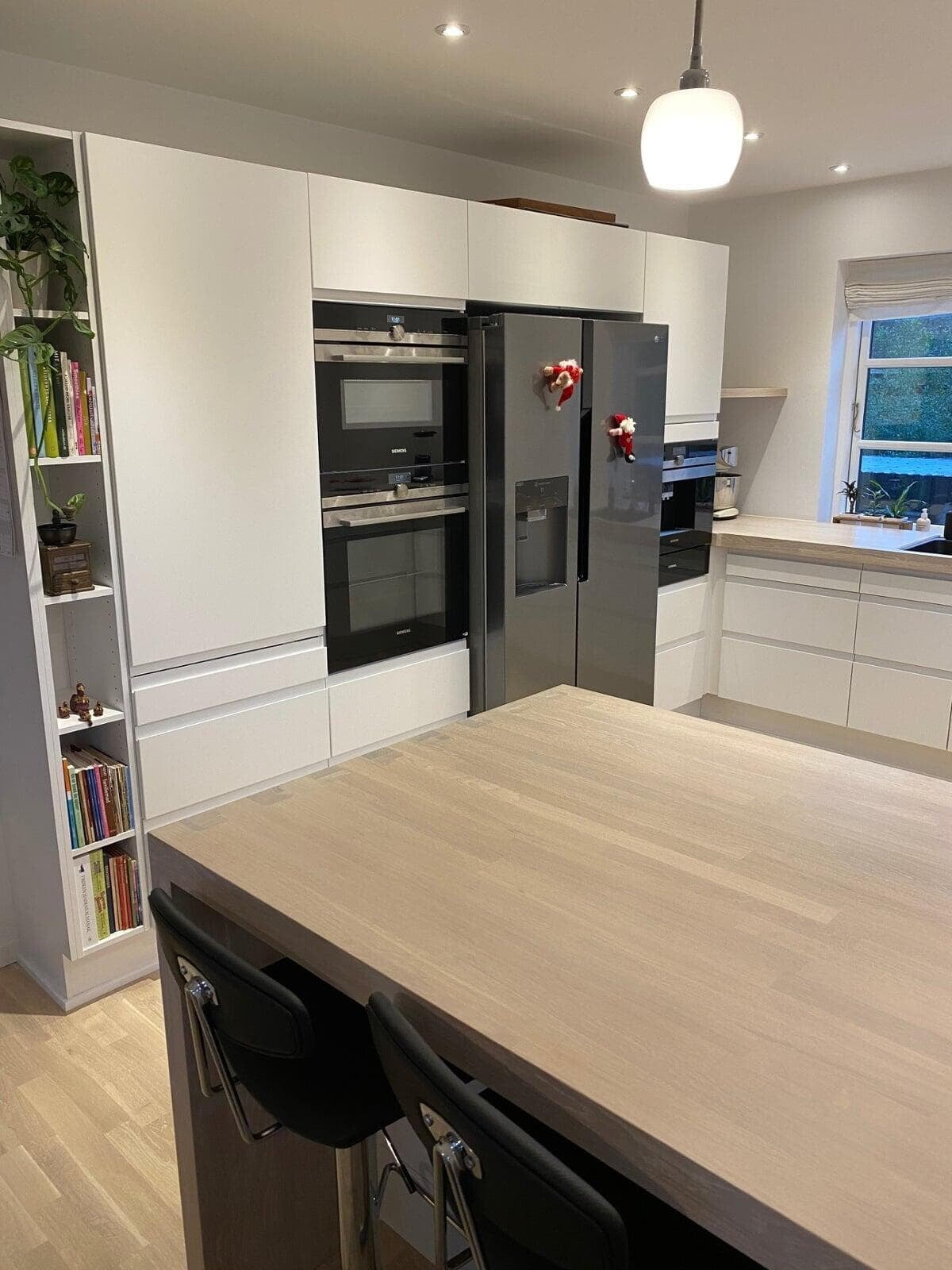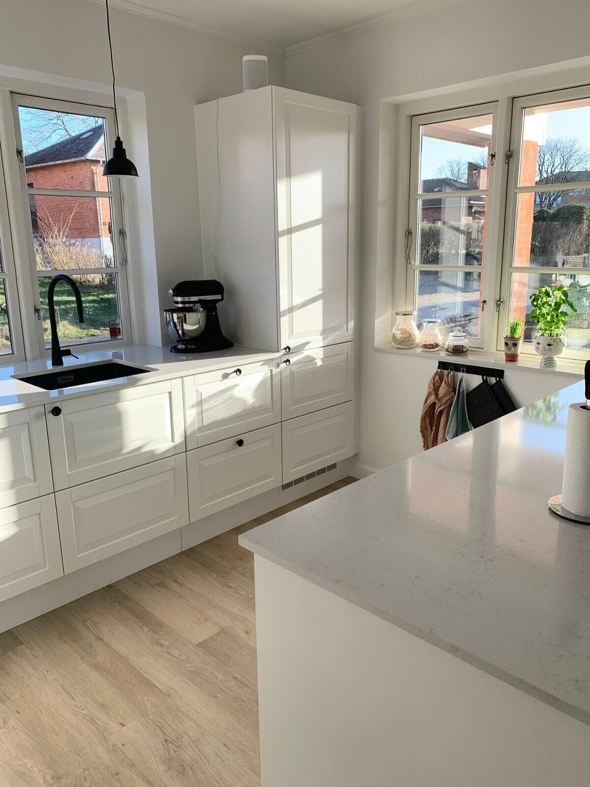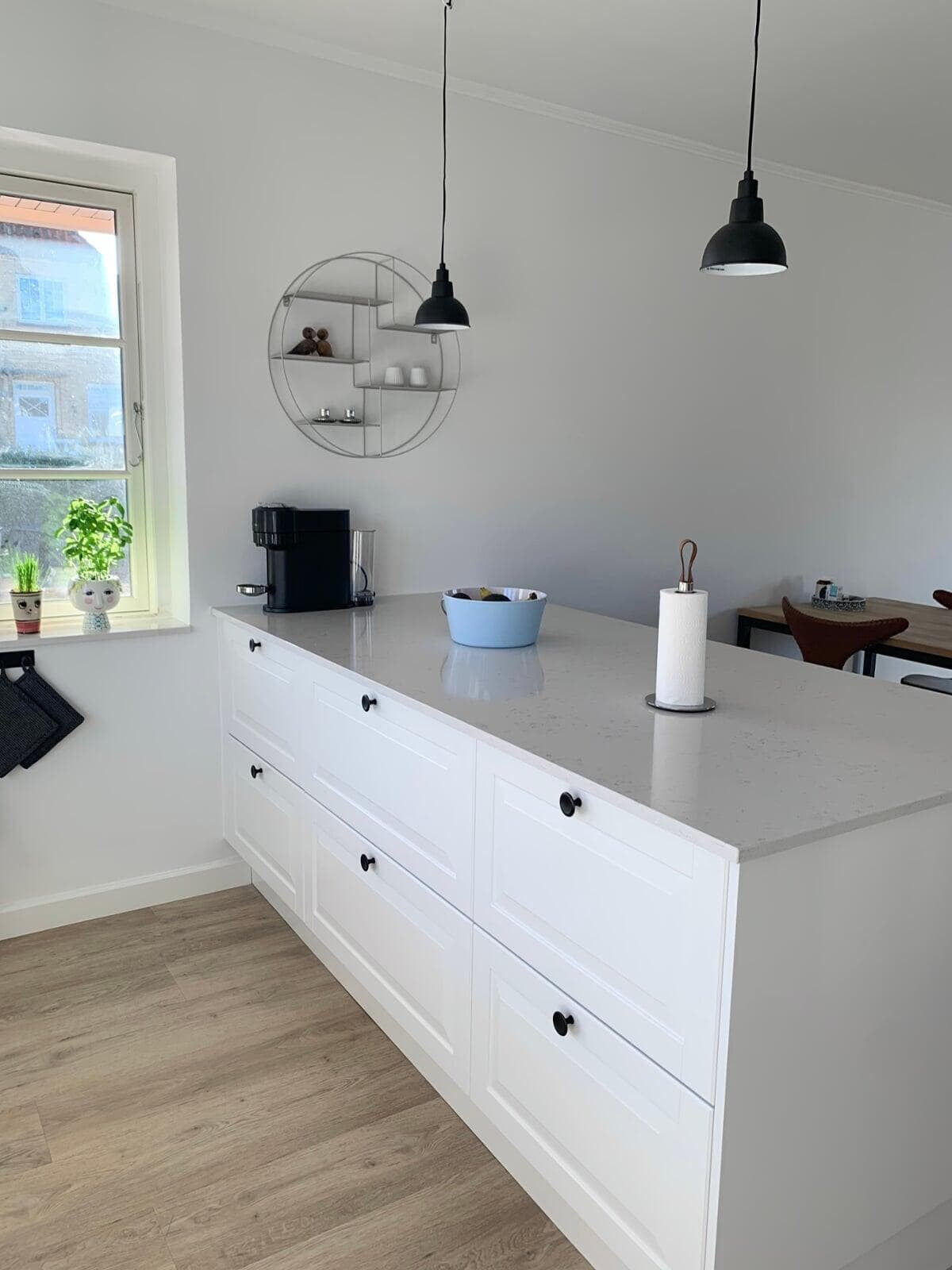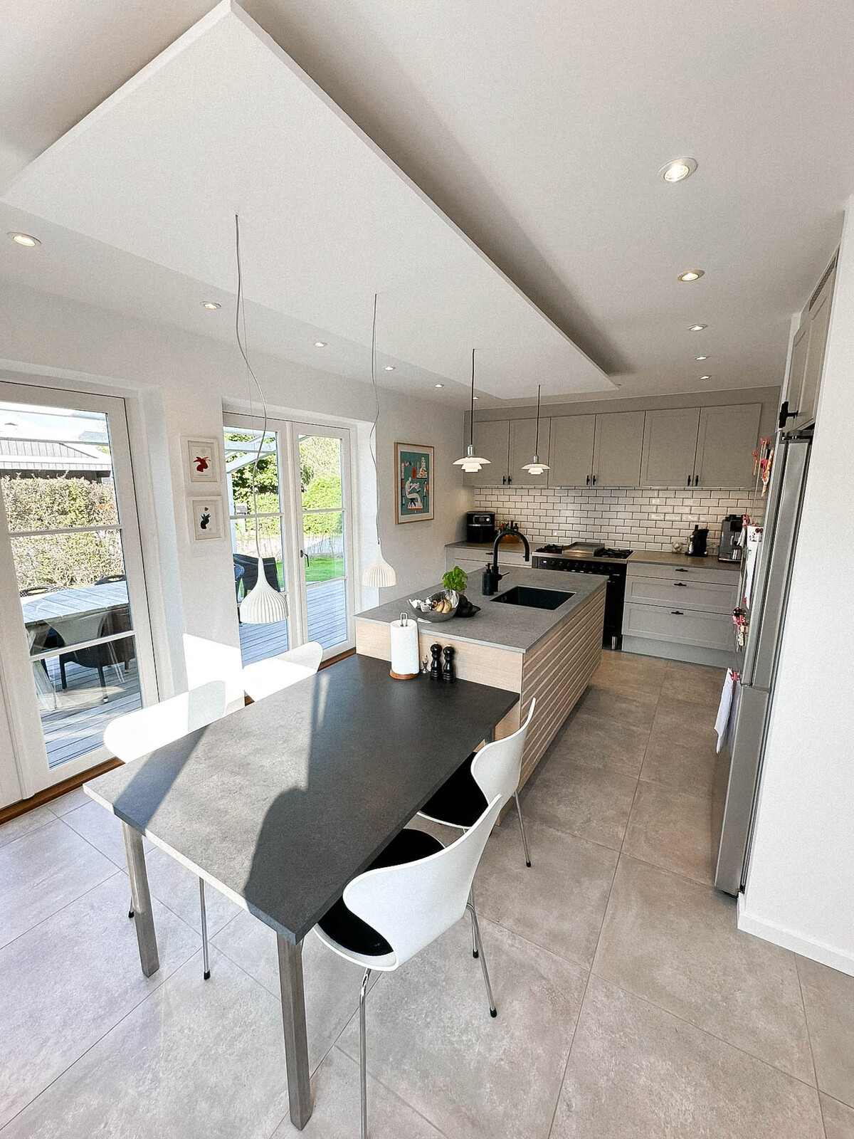 Ønsket var et stort og indbydende køkken med god plads til gæster og til opbevaring. Vi er rigtig glade for hvordan stilen i køkkenet er gennemgående i hele rummet, og vi vil gerne fremhæve de smarte hjørneskuffer og BORA kogepladen – genialt. Tak for den gode oplevelse. Ann og Morten, Gørløse.