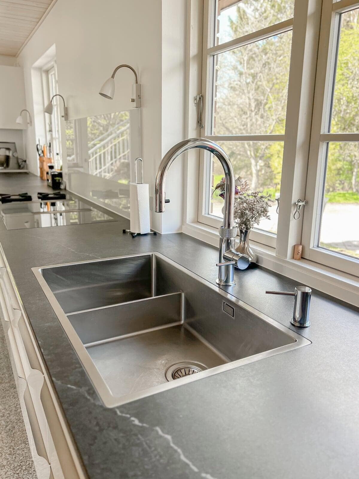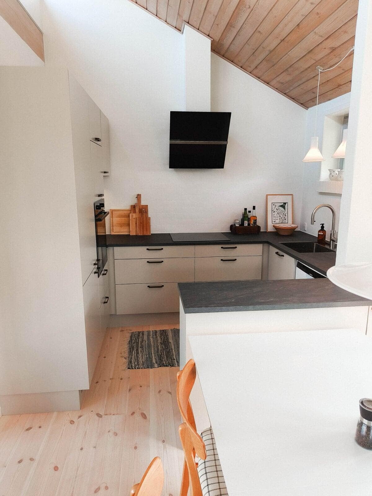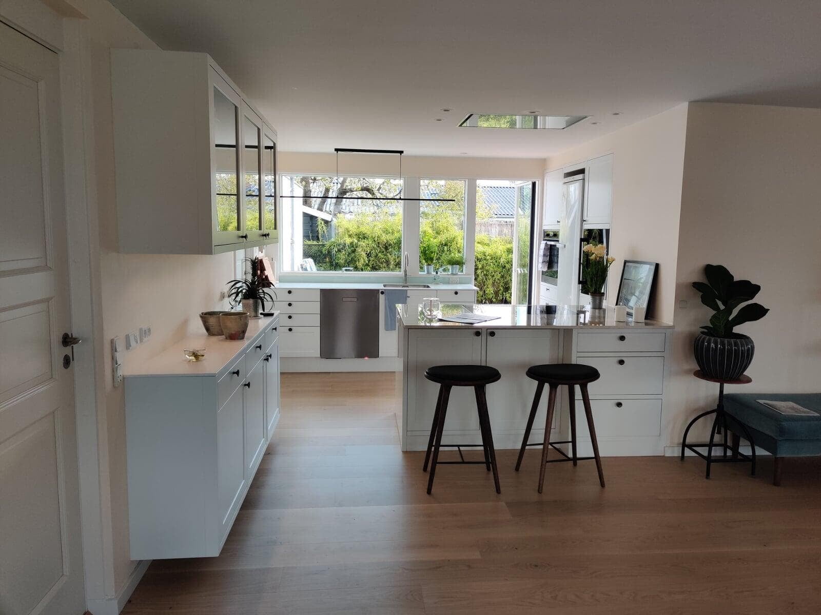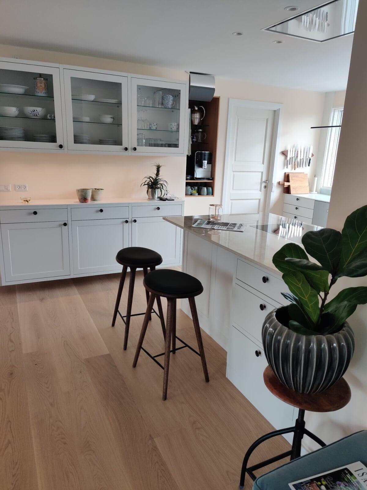 Ønsket var et stort og indbydende køkken med god plads til gæster og til opbevaring. Vi er rigtig glade for hvordan stilen i køkkenet er gennemgående i hele rummet, og vi vil gerne fremhæve de smarte hjørneskuffer og BORA kogepladen – genialt. Tak for den gode oplevelse. Ann og Morten, Gørløse.