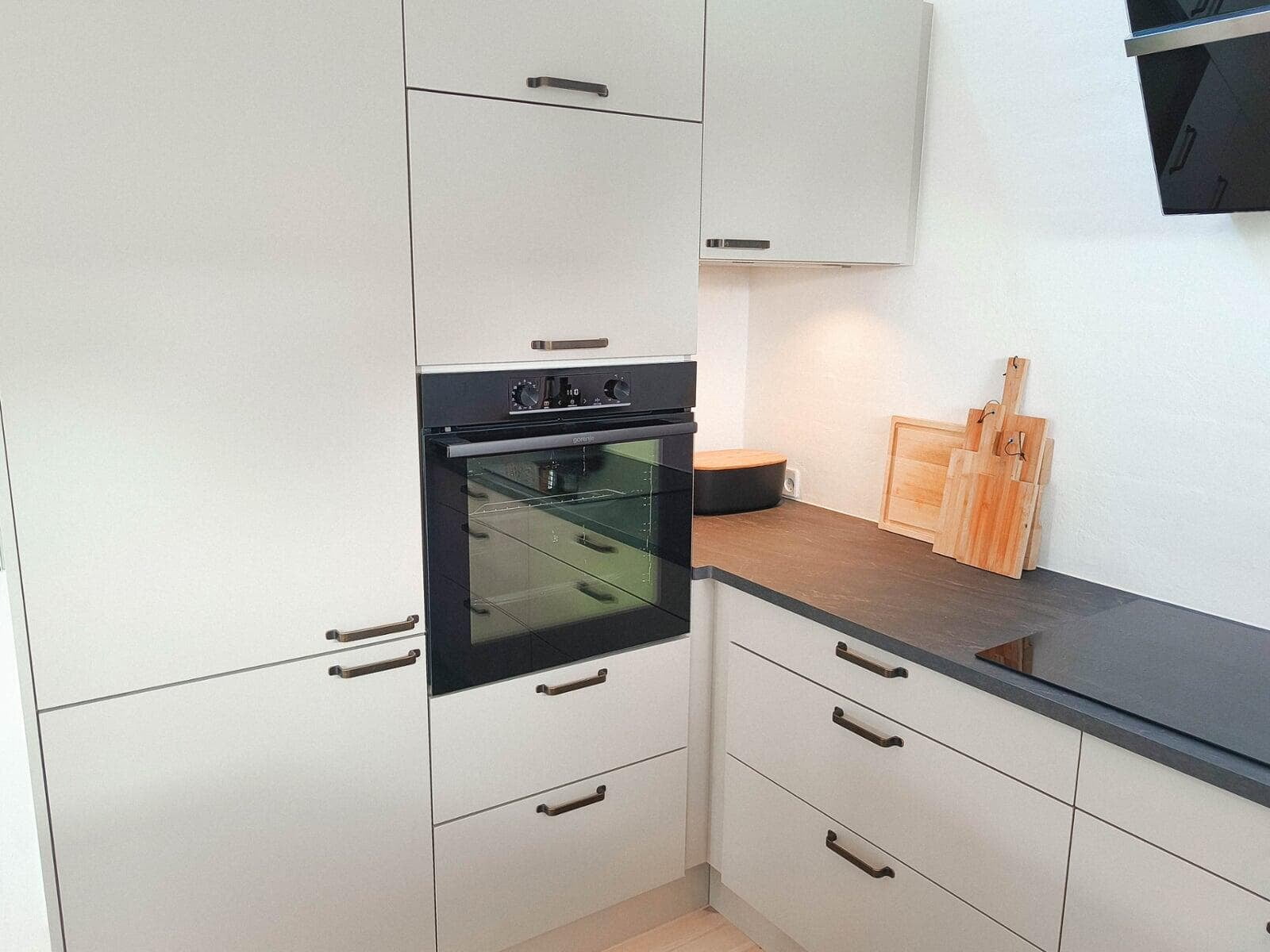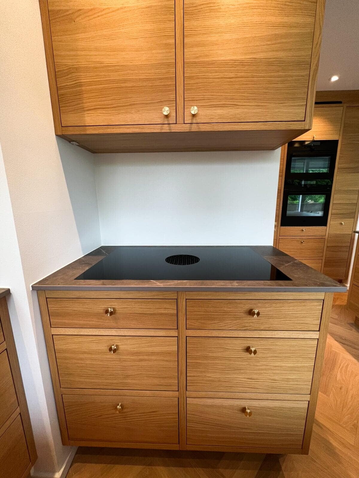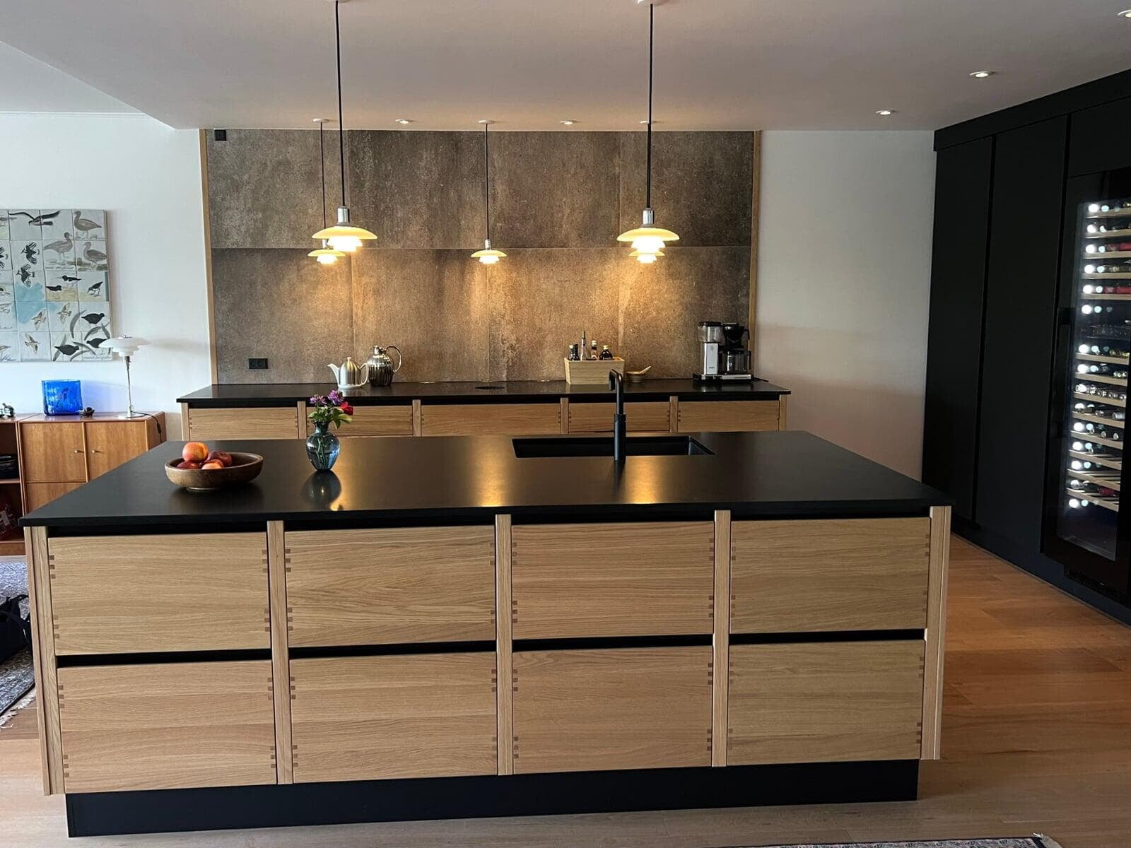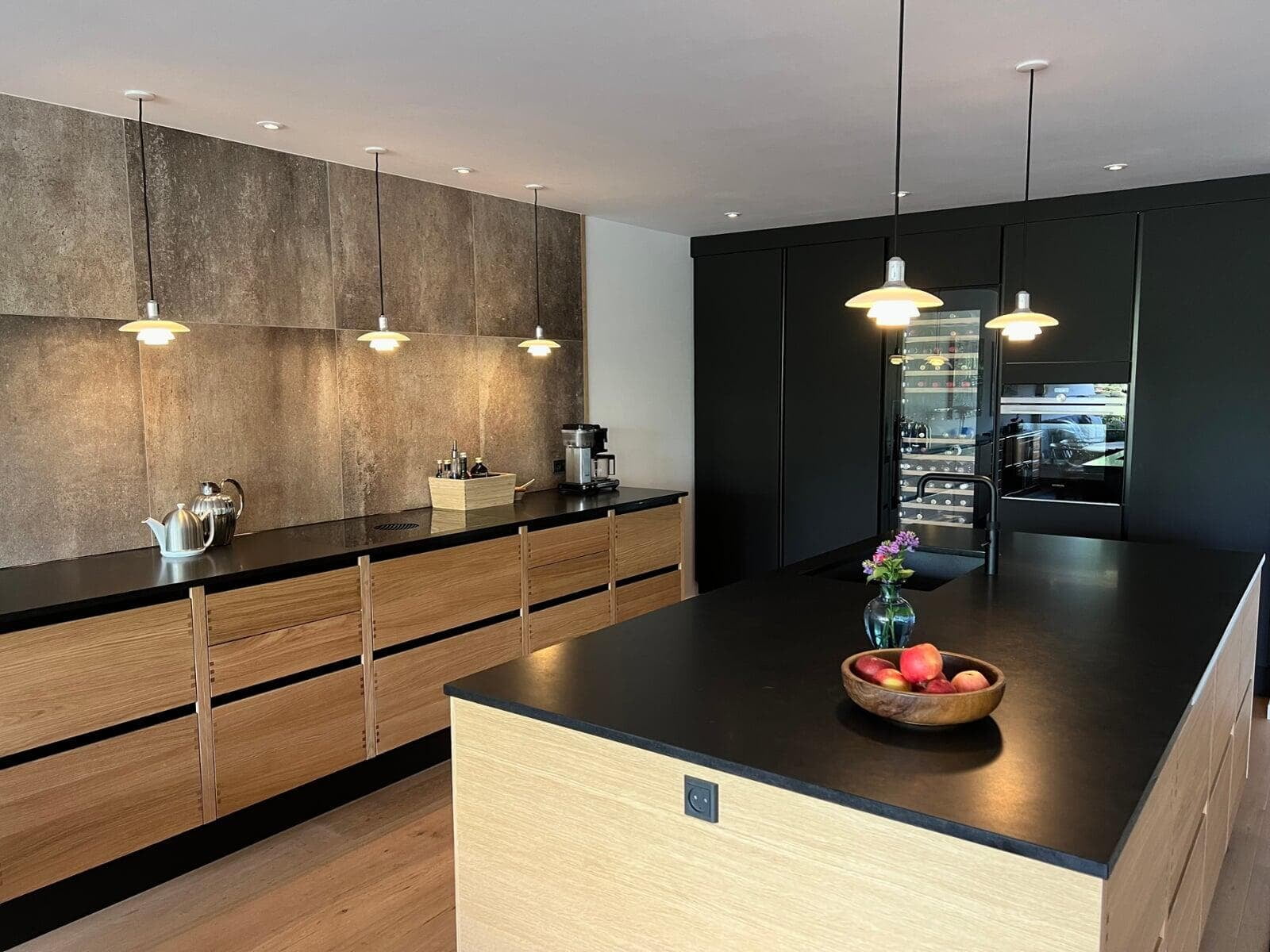 Når man selv er snedker og sætter stor pris på fingertap og flotte detaljer, var det naturlige valg et Glød-køkken. Bordpladen er i brændt granit, som passer perfekt til Glød, og de flotte højskabe med vinkøleskab og to ovne fuldender stilen. Jeg er meget tilfreds med resultatet. Mikkel, Farum