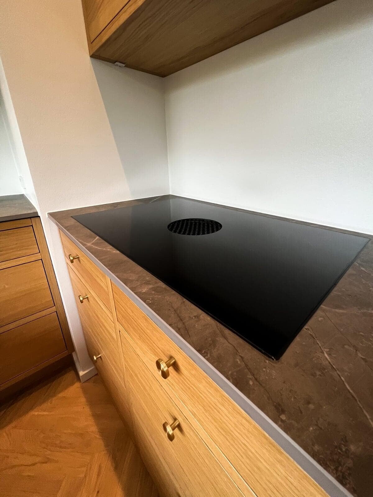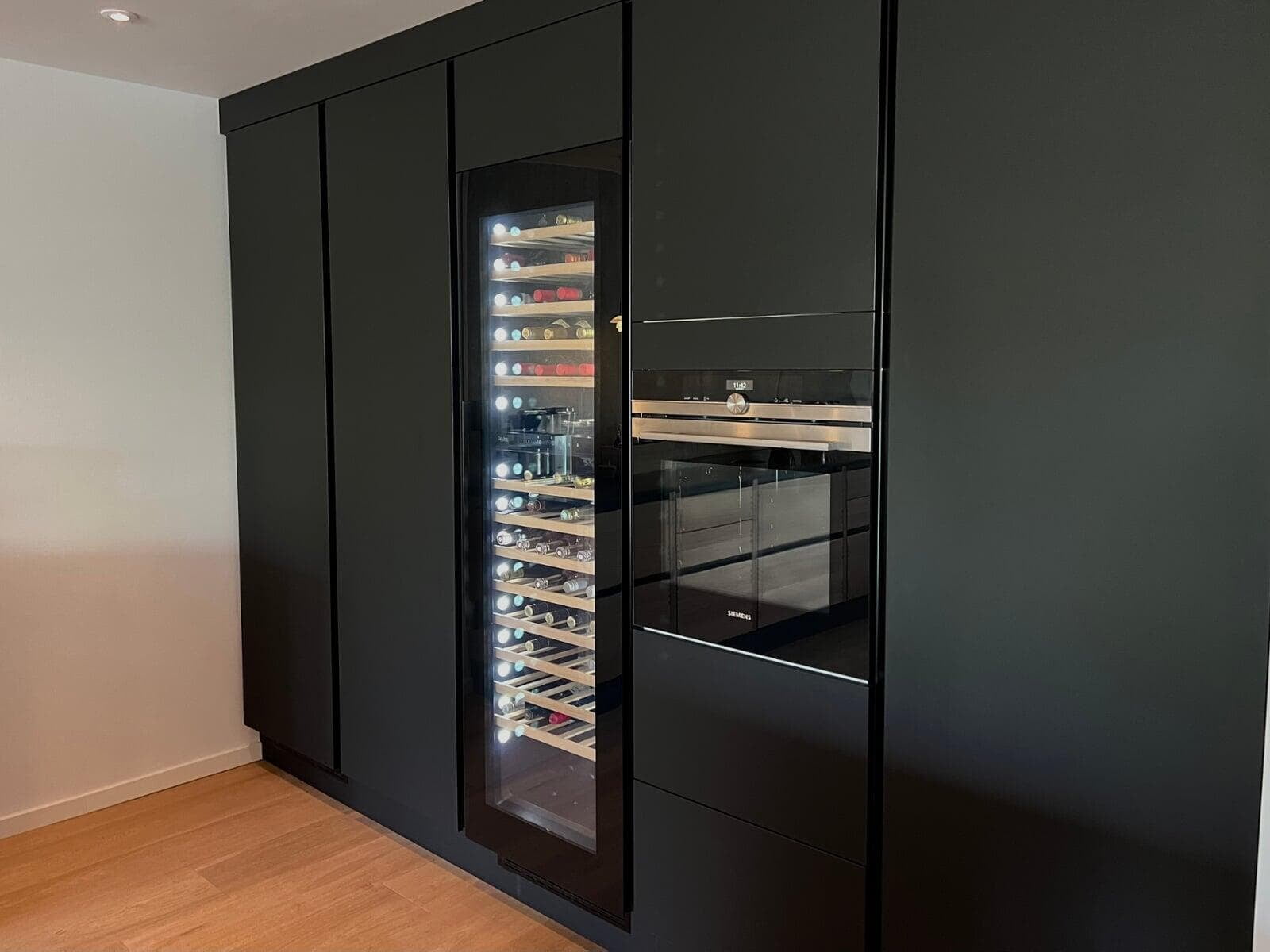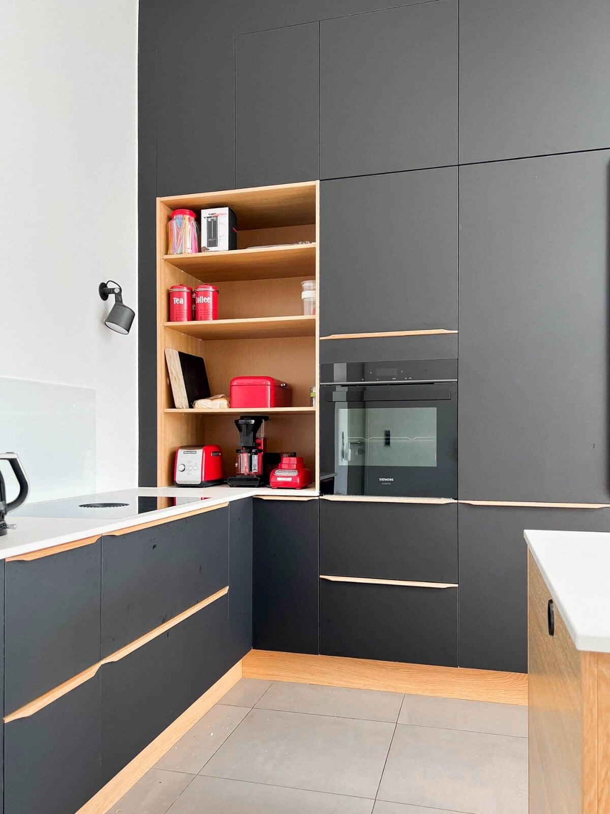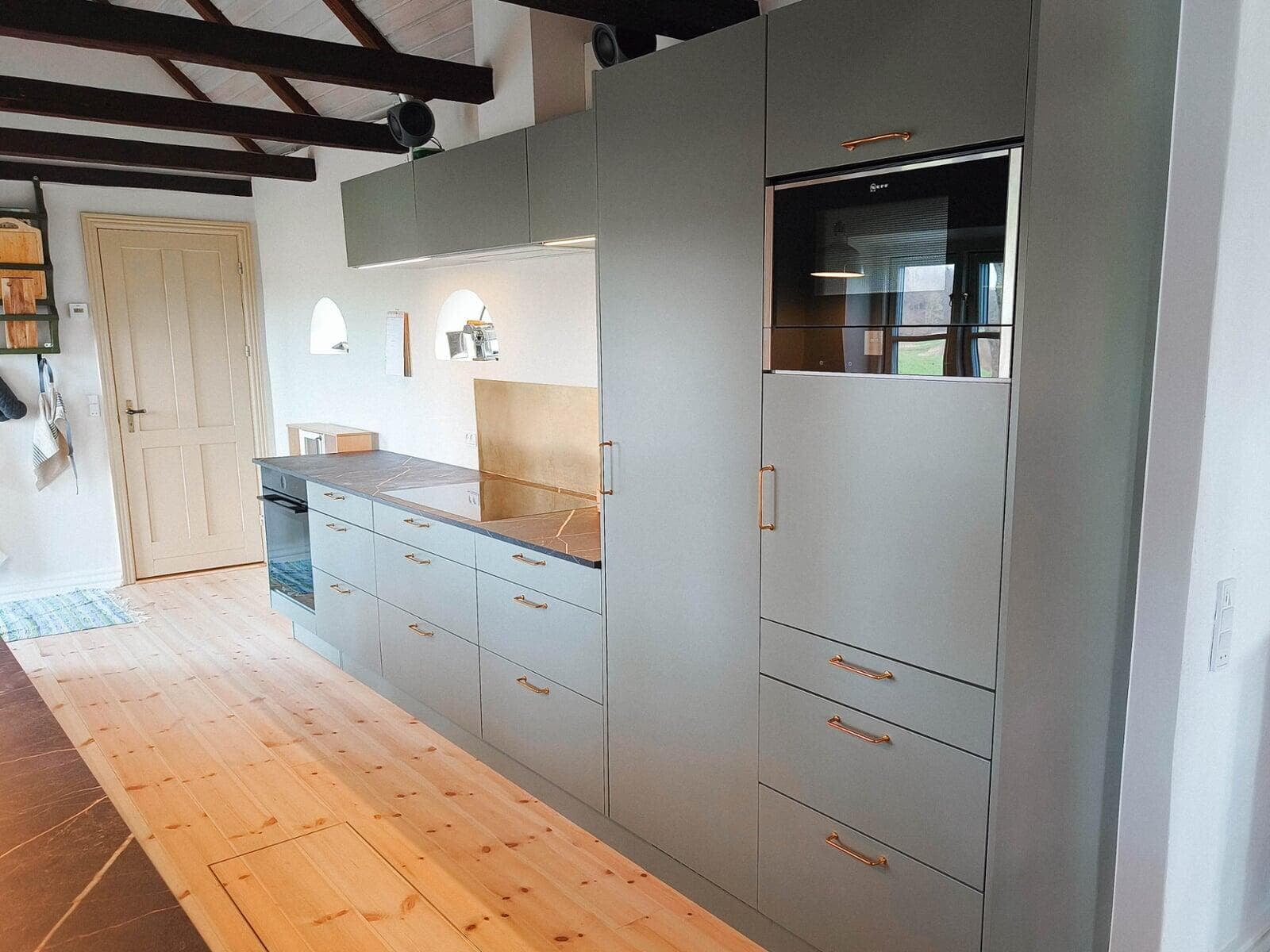 Når man selv er snedker og sætter stor pris på fingertap og flotte detaljer, var det naturlige valg et Glød-køkken. Bordpladen er i brændt granit, som passer perfekt til Glød, og de flotte højskabe med vinkøleskab og to ovne fuldender stilen. Jeg er meget tilfreds med resultatet. Mikkel, Farum