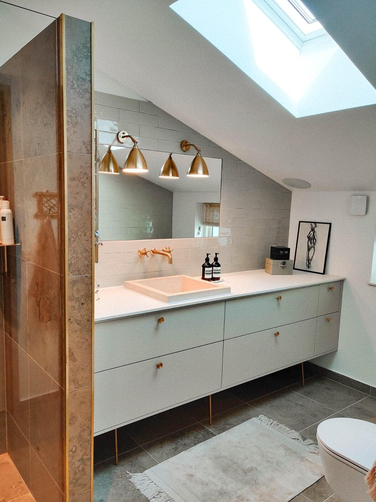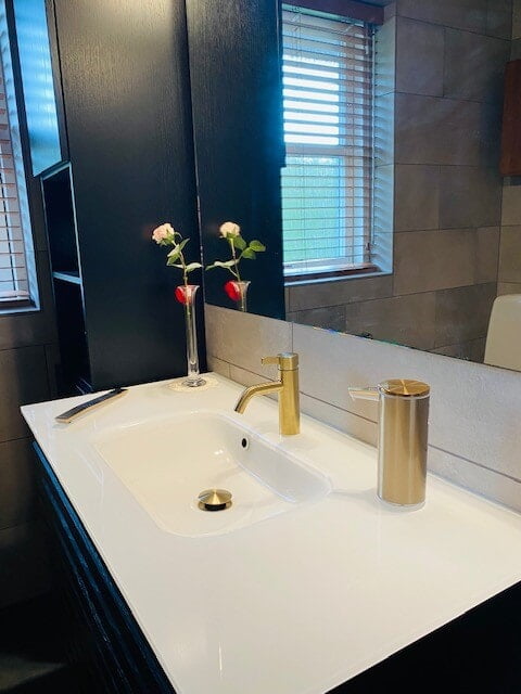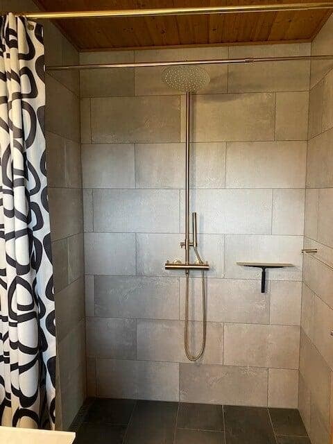 I Birkerød er der kommet en elegant forvandling. Fronter i Timian Cover laminat med messinggreb skaber varme, mens skydedøre med spejl og lys eg tilfører funktionalitet. Copenhagen badekar fra Danline og klinker fra HL Keramik fuldender udtrykket. En stilren fornyelse med sans for detaljen.