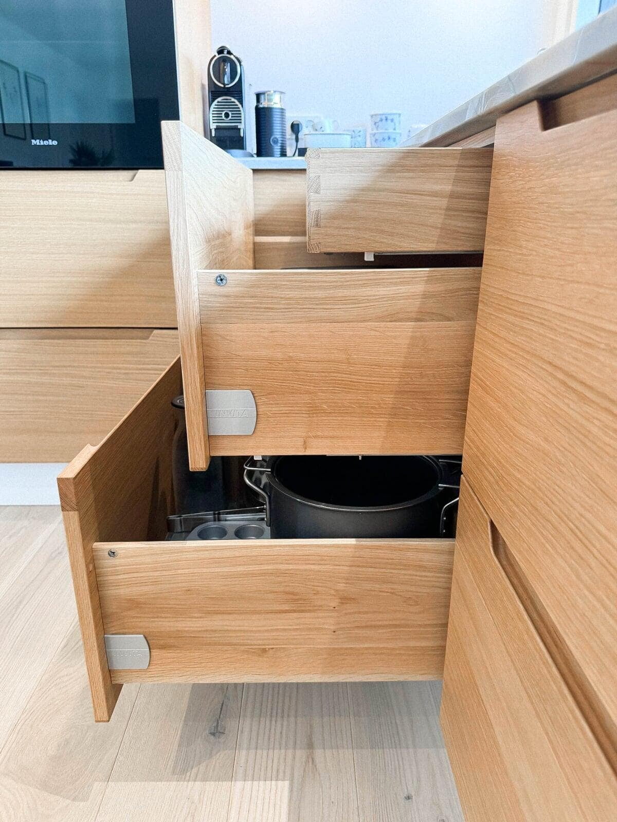 Familien drømte om et funktionelt og stilfuldt hjem. Vi leverede Ropox-systemer, smarte udtræk og fingertappede egetræsskuffer. Vores Entrepriseafdeling tog hånd om renoveringen, og gjorde familiens vision til virkelighed, med fokus på både æstetik og kvalitet.