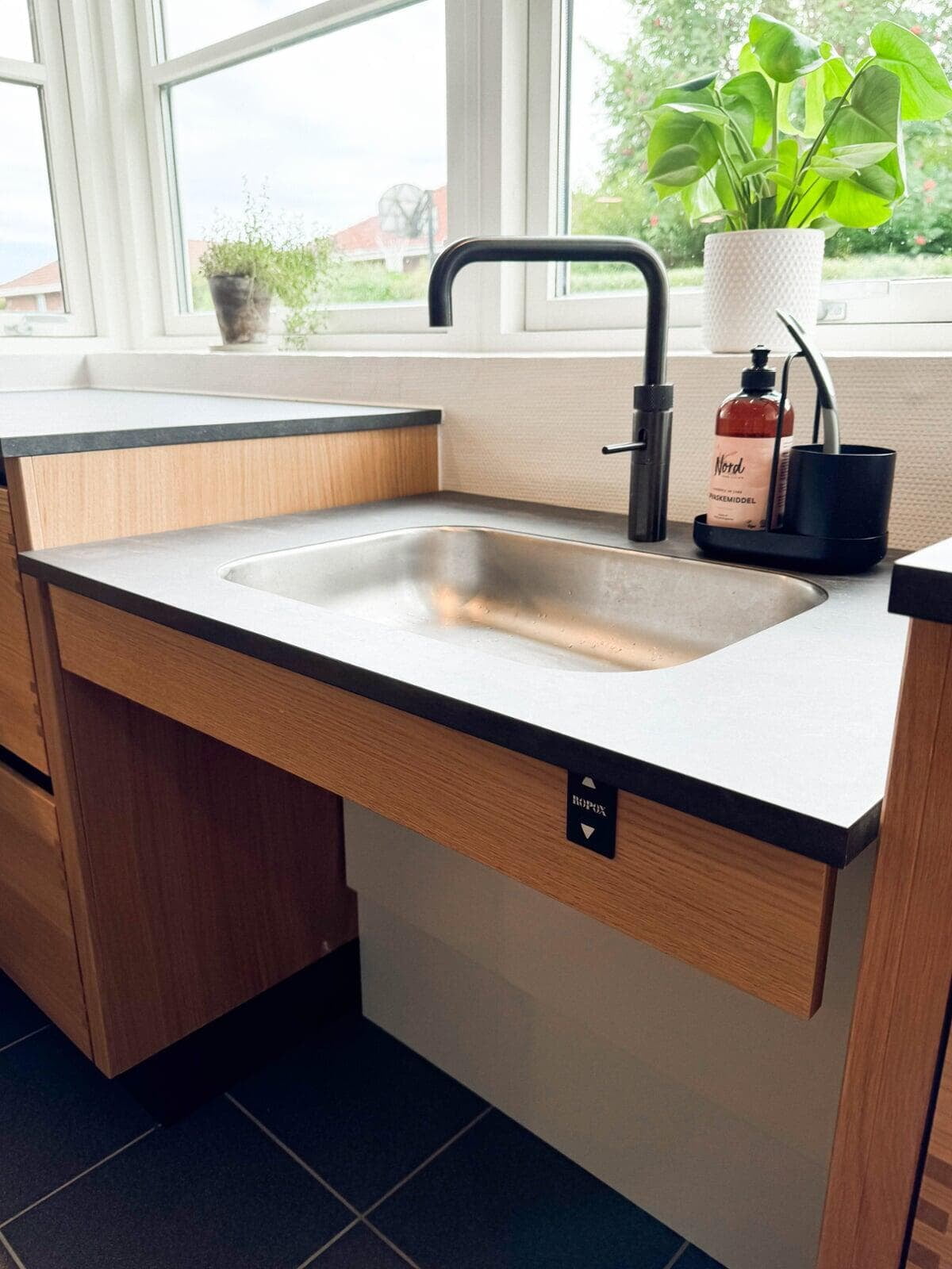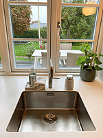 Ekstra bred vask, Quooker med fem slags vand, ovn og microovn, der passer sammen, planlimet Bora kogeplade, hyggelig bænk i køkkenet, gulvvarme og nye fliser, etablering af vask i bryggers, skjult elskab. Alt er blevet nyt, større og bedre, og vi er meget glade. Familien i Frederikssund.