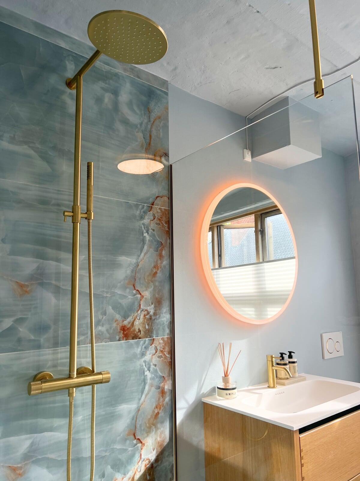 Corian, krom og praktisk indretning af badeværelse i Birkerød