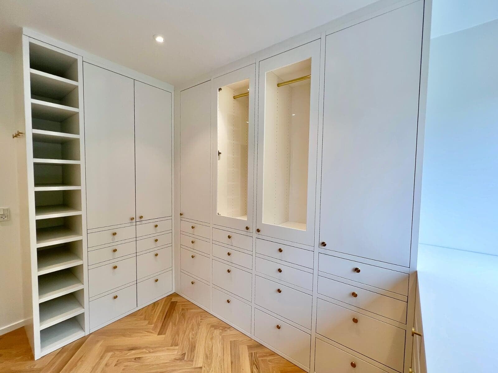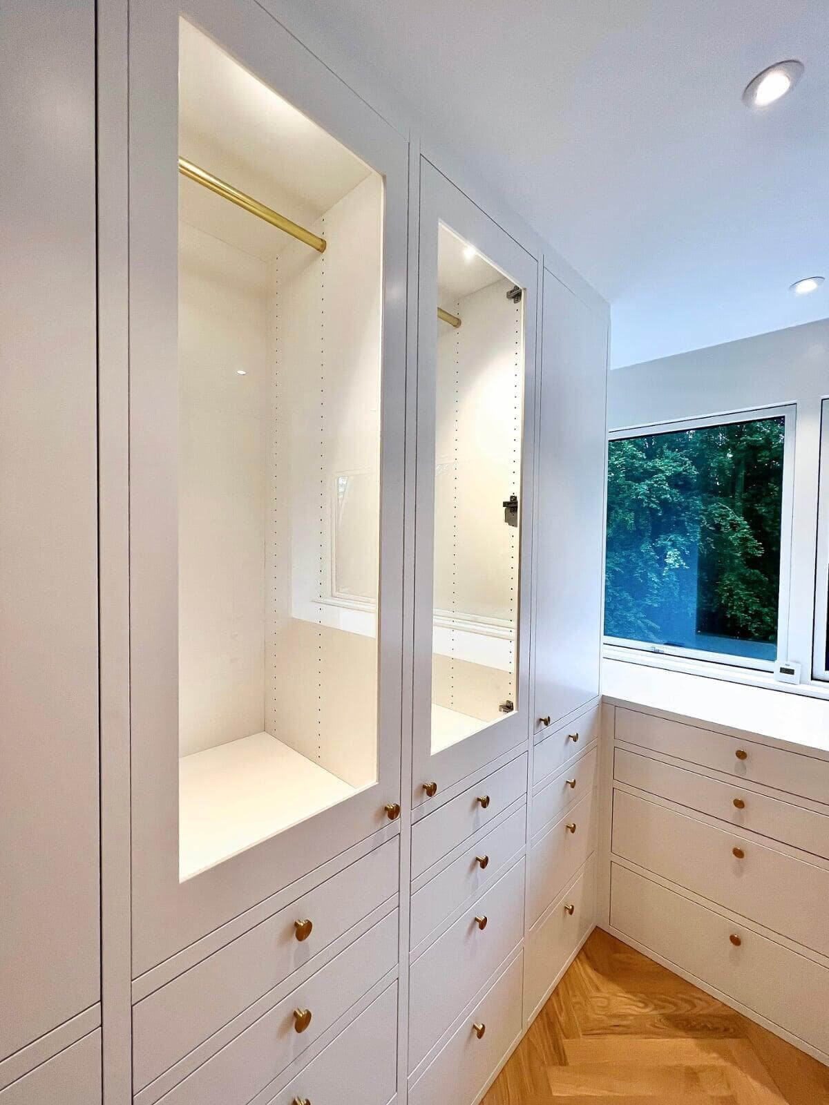Drømmen var en walk-in garderobe. Vi så et vitrineskab i showroom’et, som vi forelskede os i, og idéen om at få samme look i garderoben var født. Der blev lyttet til vores ønsker, og vi kunne få det præcis, som vi ville – både i design og indretning. Det er blevet så lækkert. Familien fra Hillerød.