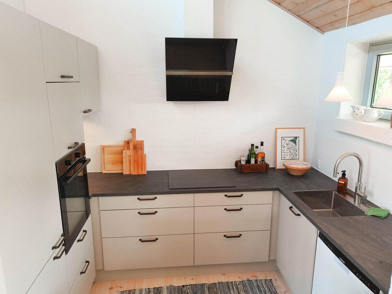 Kunden ønskede et enkelt og stilrent udtryk i forbindelse med renovering. Efter grundig rådgivning og montering står køkken og bryggers nu færdigt med Bora kogeplade, Quooker og en smuk Dekton keramikbordplade. Kunden er meget tilfreds med resultatet.
