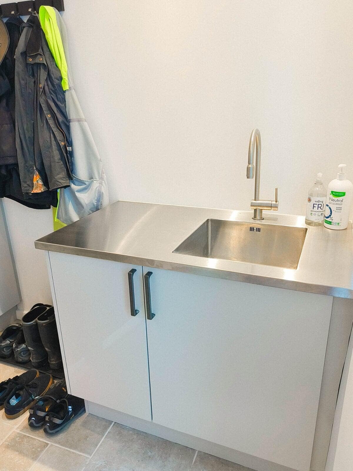 Det var naturligt for os at kontakte Invita Hillerød igen, da vi fik ideen til et bryggers, der skulle matche vores køkken. Løsningen blev Nordic, og vi fik skjult varmtvandsbeholderen samt installationer i et pænt skab, og har nu et skønt og praktisk rum med god opbevaringplads. Mette og Jørgen, Helsinge
